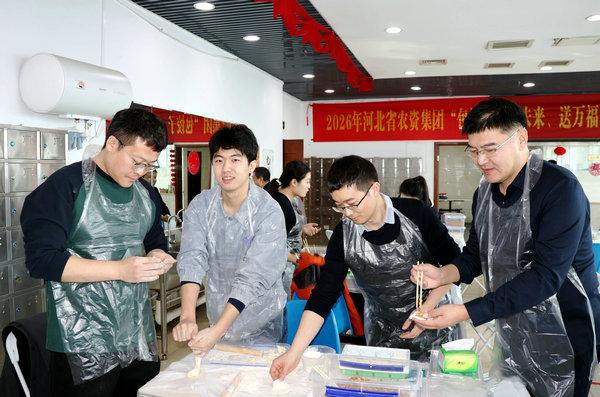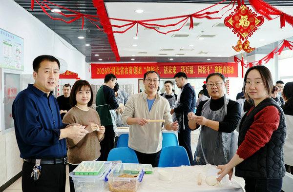 在河北農(nóng)資大廈職工食堂內(nèi),每張桌子上面團(tuán)、餃子餡和工具早已擺放就緒,大家圍在一起共同包餃子。各部門(mén)積極參與,分工明確,紛紛秀出自己的絕活,不一會(huì)兒各式各樣的餃子就出現(xiàn)在托盤(pán)中,“年味兒”瞬間撲面而來(lái)。餃子雖小,情誼至深,大家把歡樂(lè)、希望和祝福一同包進(jìn)餃子中。大家圍坐在一起吃著熱氣騰騰的餃子,暢談2025年工作收獲,暢想2026年工作愿望。
