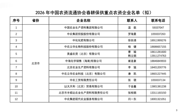 本網(wǎng)訊 3月16日,中國(guó)農(nóng)資流通協(xié)會(huì)向社會(huì)公示“2026年中國(guó)農(nóng)資流通協(xié)會(huì)春耕保供重點(diǎn)農(nóng)資企業(yè)名單”。河北省農(nóng)資集團(tuán)及旗下河北冀隆生物科技有限公司、河北豐澤苑化肥有限公司、河北思佰收農(nóng)業(yè)科技有限公司再次入選“2026年中國(guó)農(nóng)資流通協(xié)會(huì)春耕保供重點(diǎn)企業(yè)名單”。